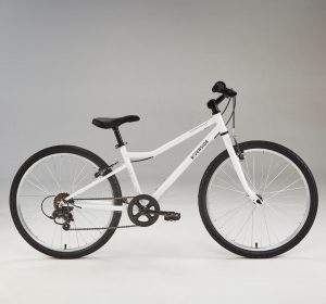 Pour découvrir les premières balades à vélo, notre VTC enfant 24 pouces est équipé de 6 vitesses. Il vous permet d’aborder tous types de chemins: du terrain plat aux sentiers vallonnés.