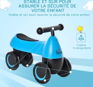 DRAISIENNE VÉLO ENFANT 4 ROUES EVA SELLE GUIDON ERGONOMIQUE BLEU NOIR