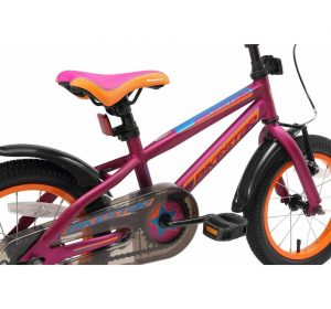 Epuré, ce vélo est simple d’utilisation. Il résiste aux aventures que votre enfant lui fera vivre. Pas de risque de se pincer les doigts grâce au carter de chaîne. Stabilisateurs 16″ compatibles.