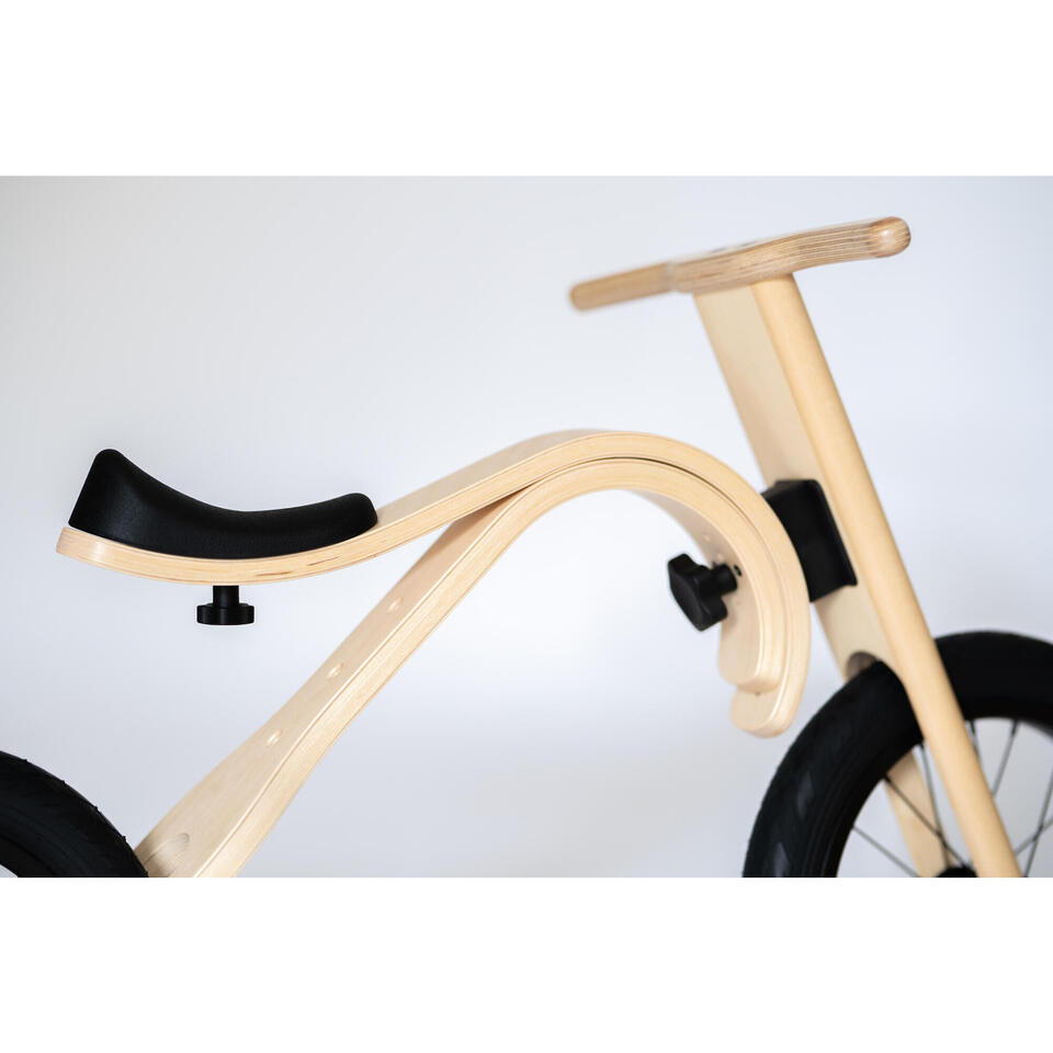 La construction du cadre en bois incurvé offre une excellente absorption naturelle des chocs et protège le dos de l’enfant sur les routes bosselées. Grâce à la structure intelligente du cadre et à ses pièces polyvalentes, le vélo peut être transformé en quelques secondes seulement. À travers toutes ces modifications, le vélo reste solide et ergonomique afin que ses riders puissent acquérir de nouvelles compétences en toute sécurité.