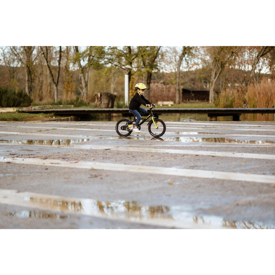 Carter de chaîne, garde boues et béquille permettent à votre enfant de profiter de ses premiers déplacements sans se salir ni abîmer son vélo. Stabilisateurs 16″ compatibles si besoin.