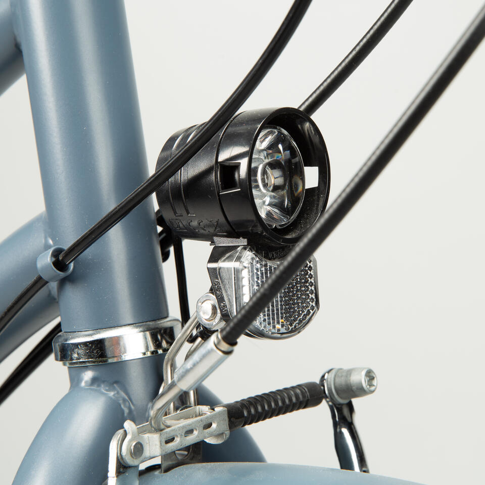 Eclairage autonome par lampes avant et arrière alimentées par dynamo bouteille.