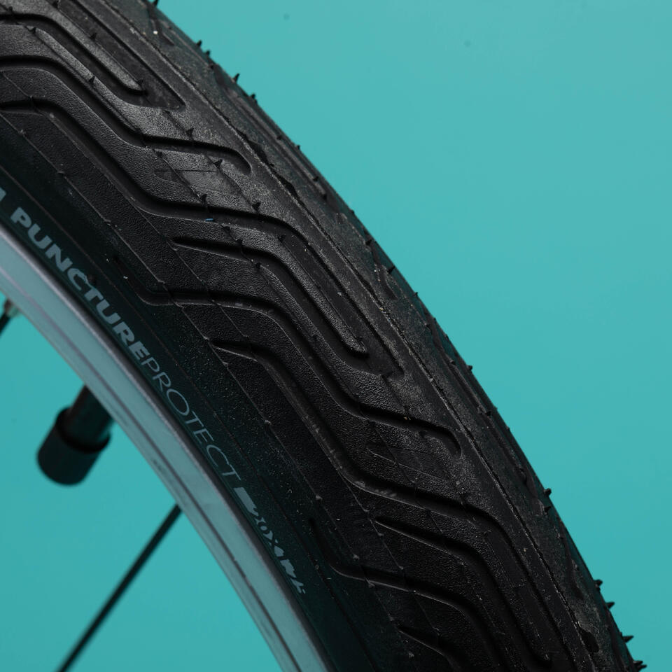 Pour minimiser le risque de crevaison et augmenter le rendement du vélo, il est nécessaire de gonfler vos pneus entre 3,5 bar et 4,5 bar.