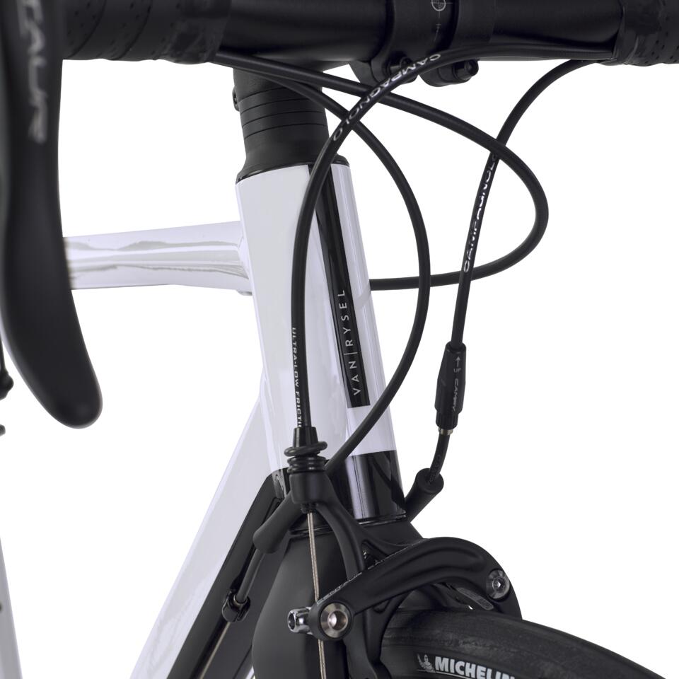 Chez Van Rysel la performance nous anime, ce vélo léger (8,9kg) est taillé pour la vitesse. Cadre aluminium, fourche carbone/alu, groupe et roues campagnolo, le meilleur de l’Italie et des Flandres