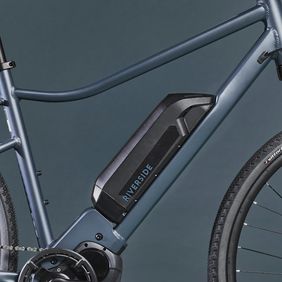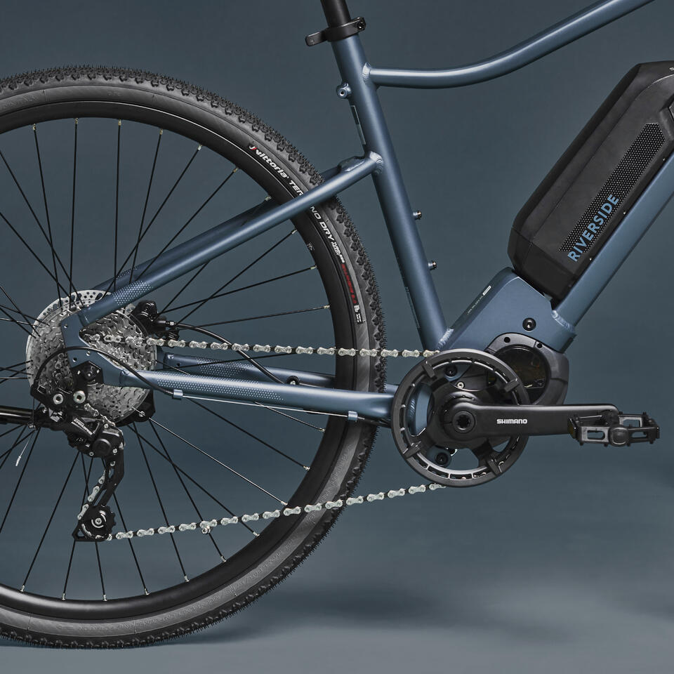 Le Riverside 540 électrique est livré avec des pédales polyvalentes plastiques monoblocs possédant une surface d’appui large pour un meilleur maintien du pied sur la pédale.