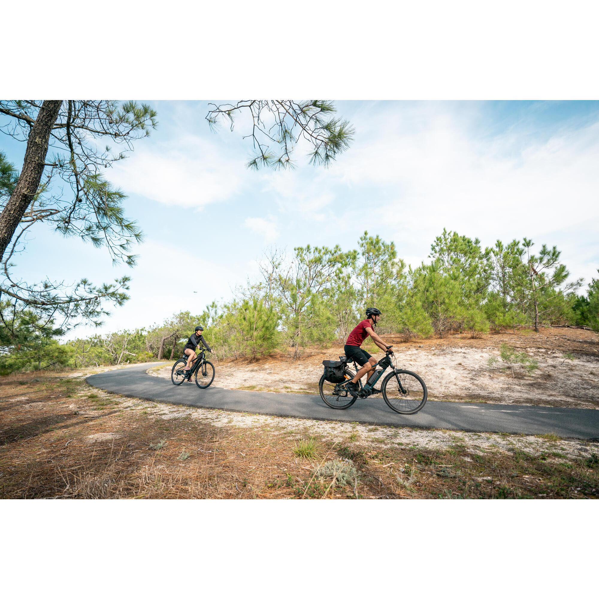 Partez en randonnée avec le Riverside 540 E équipé de roues à double paroi en aluminium noires.