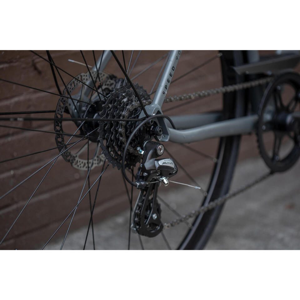 La position engagée est un premier indice du caractère joueur de ce vélo. Son cadre, léger et rigide, surprend par sa réactivité, l’accélération est naturelle et les sensations de vitesse affluent. Lorsque la ville défile, les roues double paroi répondent parfaitement aux exigences de l’asphalte alors que la transmission 8 vitesses s’évertue à rendre les distances plus courtes et le relief plus lisse. Le Speed 900 rend la ville facile.