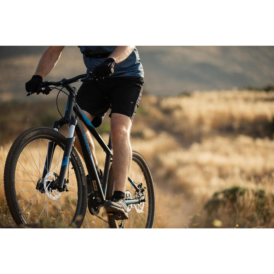 Le VTT ROCKRIDER ST 120 est livré avec des pédales VTT plates en résine dure pour plus de légèreté et de sécurité.