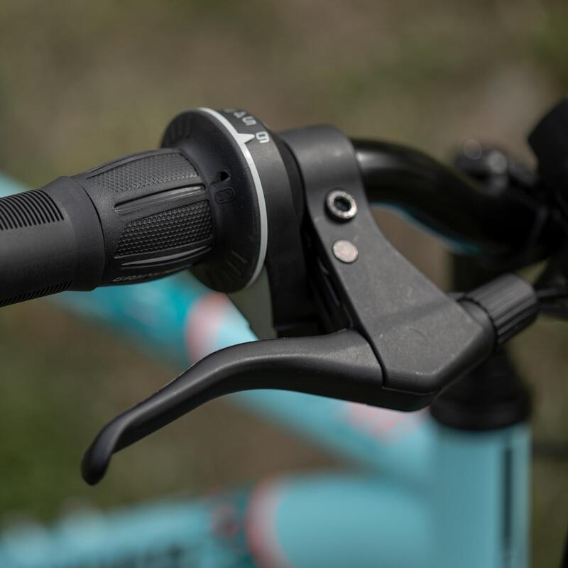 Ce vélo est équipé d’une poignée tournante pour passer les 6 vitesses : un système plus facile et plus sûr car l’enfant ne lâche pas le guidon.